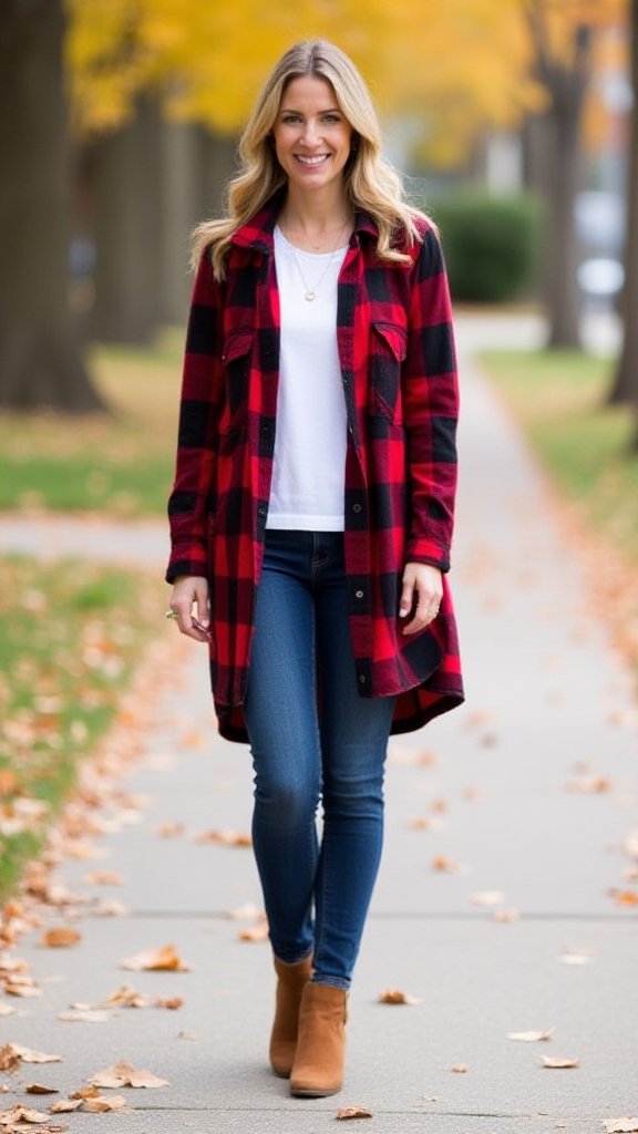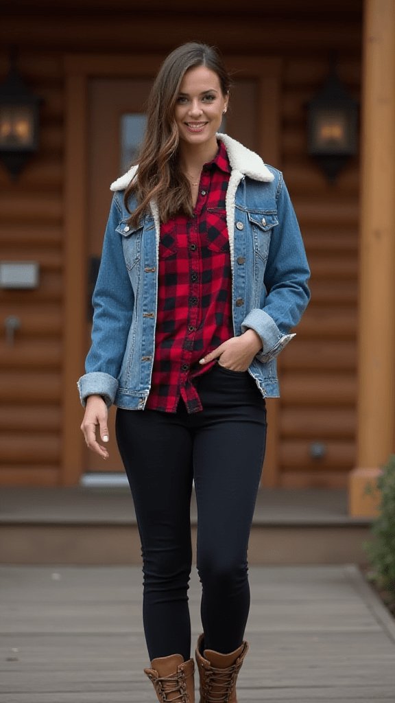A classic flannel shirt paired with a sherpa-lined jacket is perfect for those outdoor winter activities.