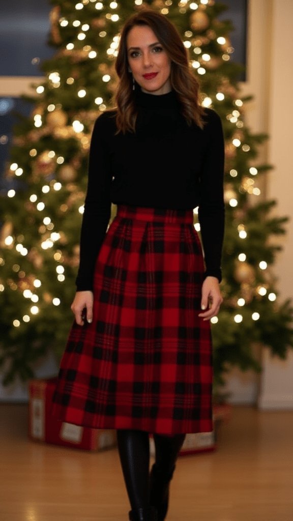 A sleek turtleneck paired with a plaid skirt is giving major preppy vibes, in the best way possible.