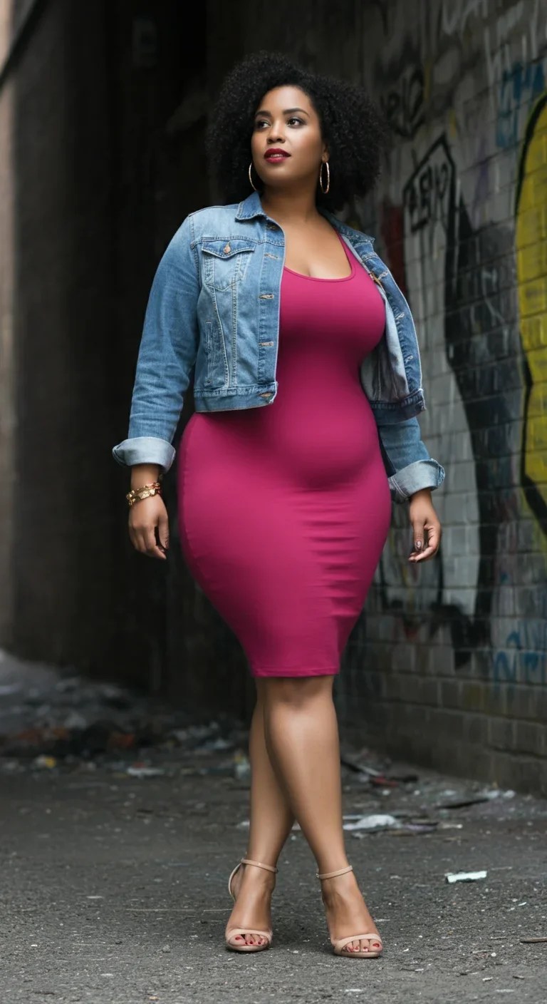 Bodycon dresses are a must-have for any baddie wardrobe, and this outfit adds a touch of edge with a denim jacket.