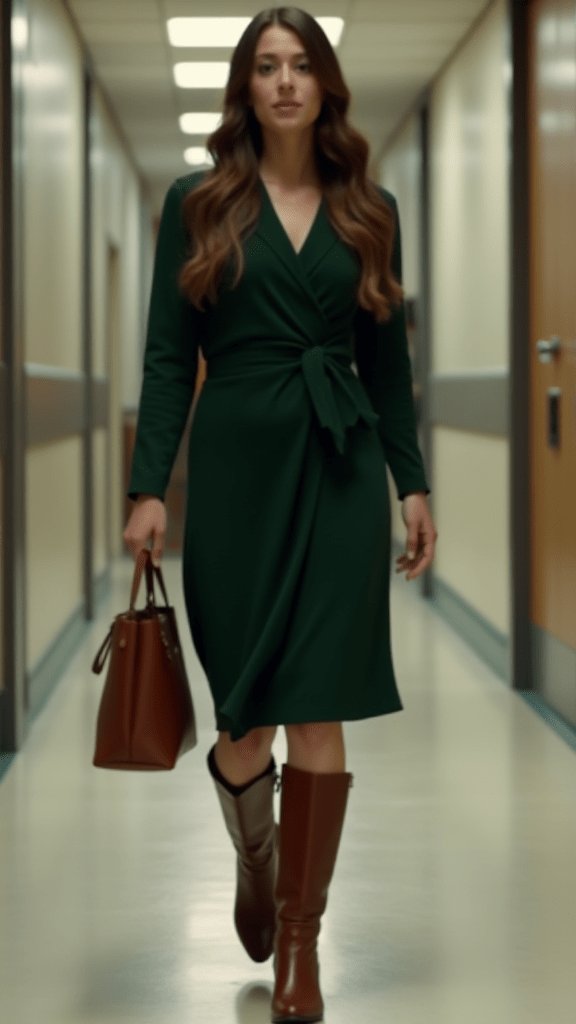A wrap dress is flattering on everyone and perfect for unpredictable office temperatures. Pair with knee-high boots for extra warmth and sass. Add a belt to cinch that waist and show Karen from accounting who s boss.