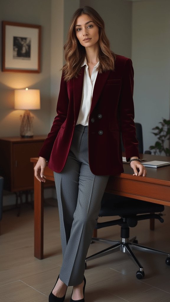 A rich velvet blazer adds a touch of sophistication to any outfit. Pair it with tailored trousers and a silk blouse for a look that screams I m here to close deals and look fabulous doing it.