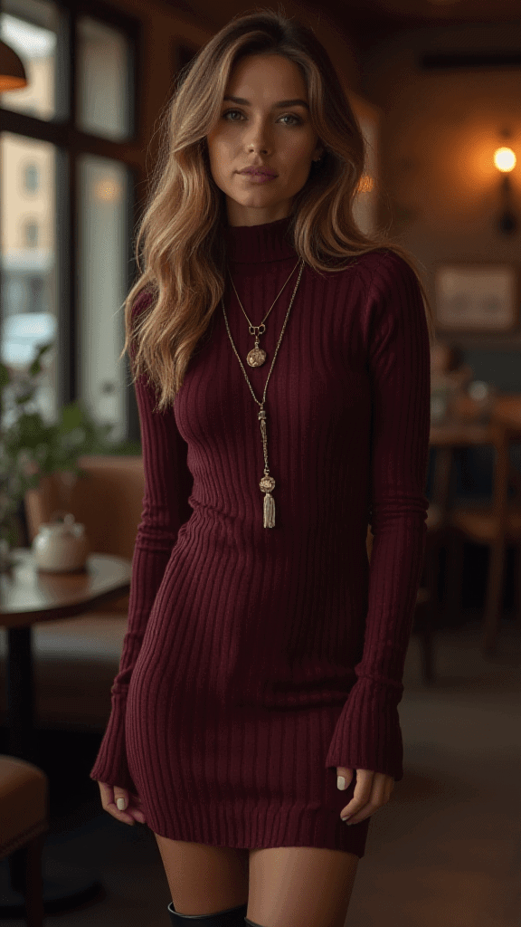 A form-fitting ribbed knit dress in a jewel tone is your secret weapon for looking put-together with minimal effort.
