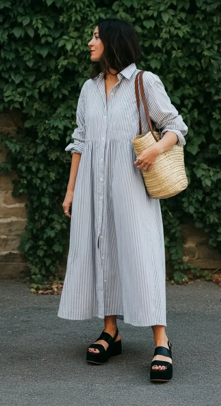 Maxi Shirt Dress with Platform Sandals