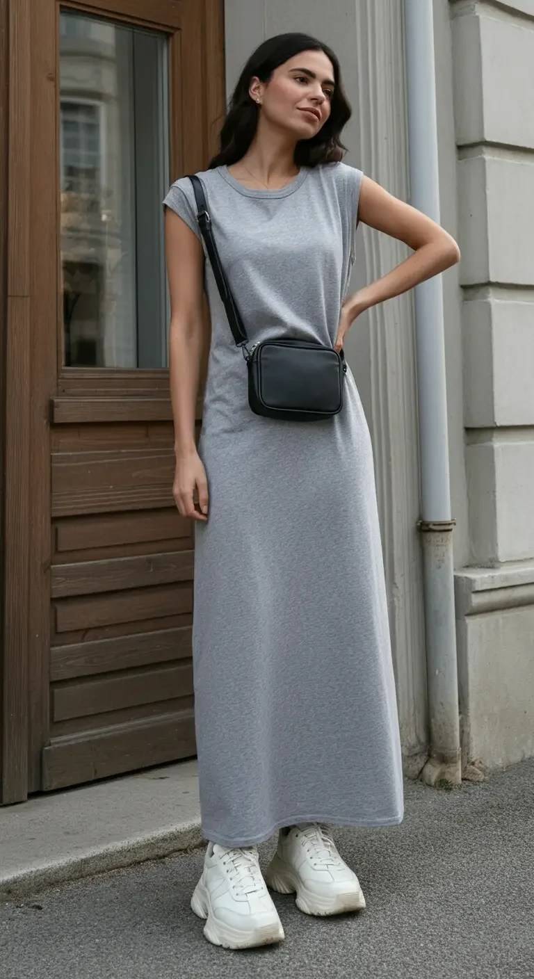 Jersey Maxi Dress with Sneakers