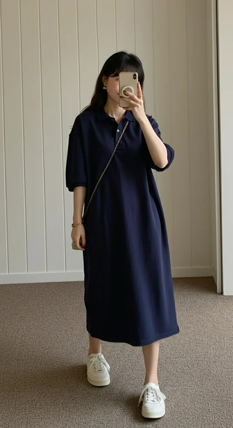 An oversized polo dress offers a sporty yet feminine look.