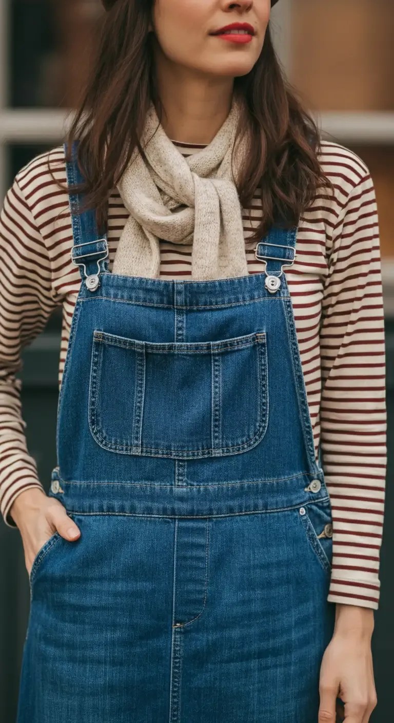 This denim pinafore dress and striped t-shirt outfit is an all-time favourite. It’s casual yet cute, perfect for a summer day out. Pair this with some white sneakers and a casual handbag.