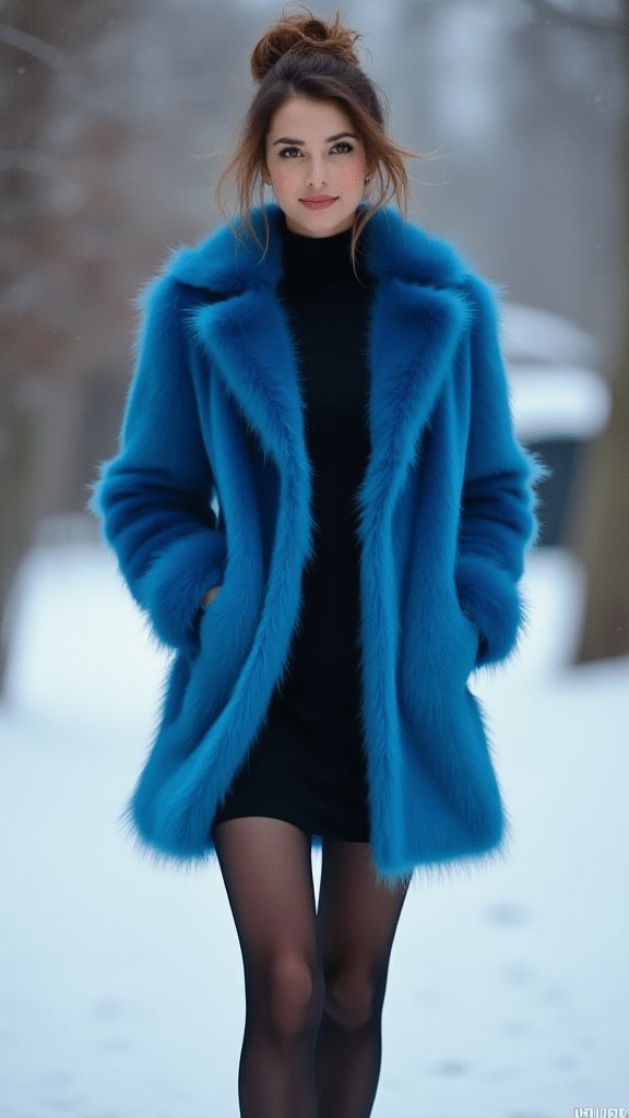 Colorful Faux Fur Coat and LBD