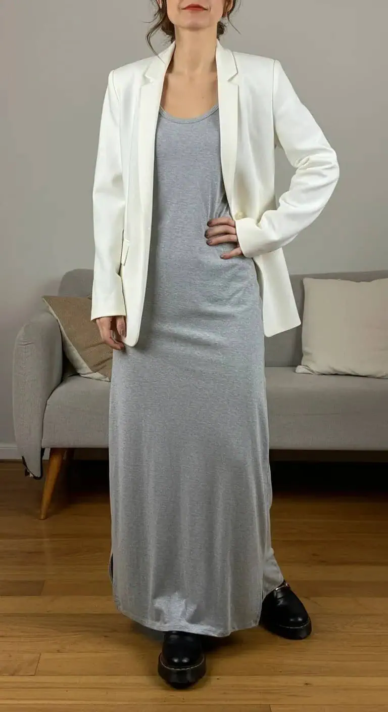 Add minimal gold jewelry and leather sandals for an elevated touch.