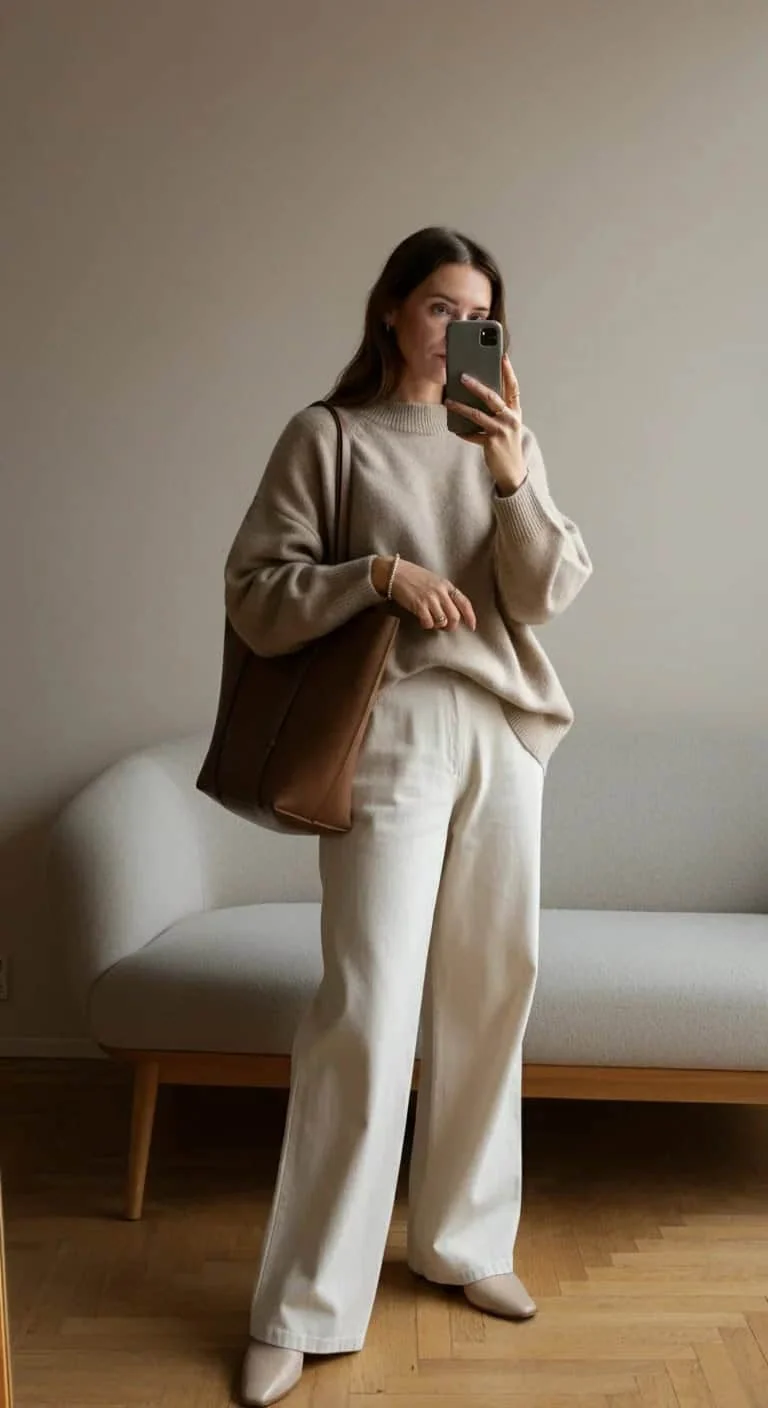 Oversized Cashmere Sweater with Wide-Leg Trousers
