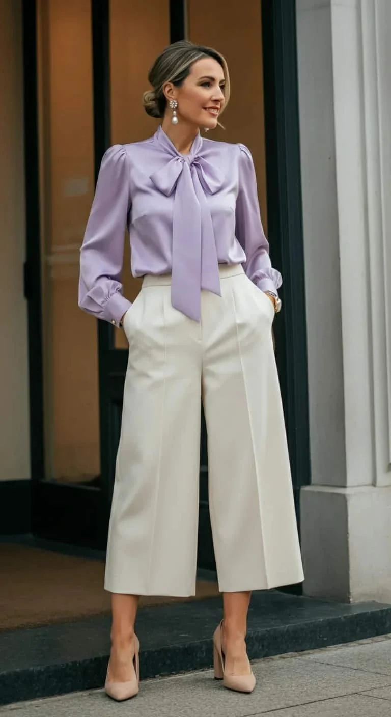 High-Waisted Culottes with Bow Blouse
