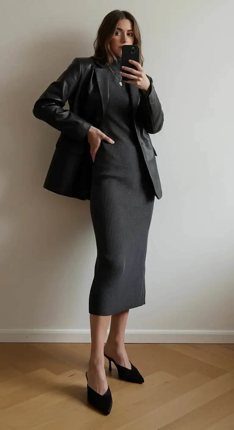 The ribbed knit dress provides comfort without sacrificing style.