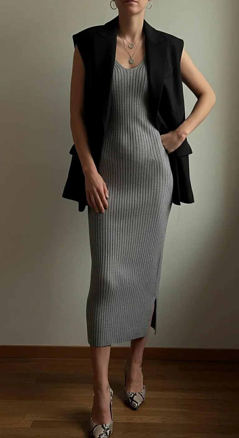 Sweater Dress with Blazer Vest