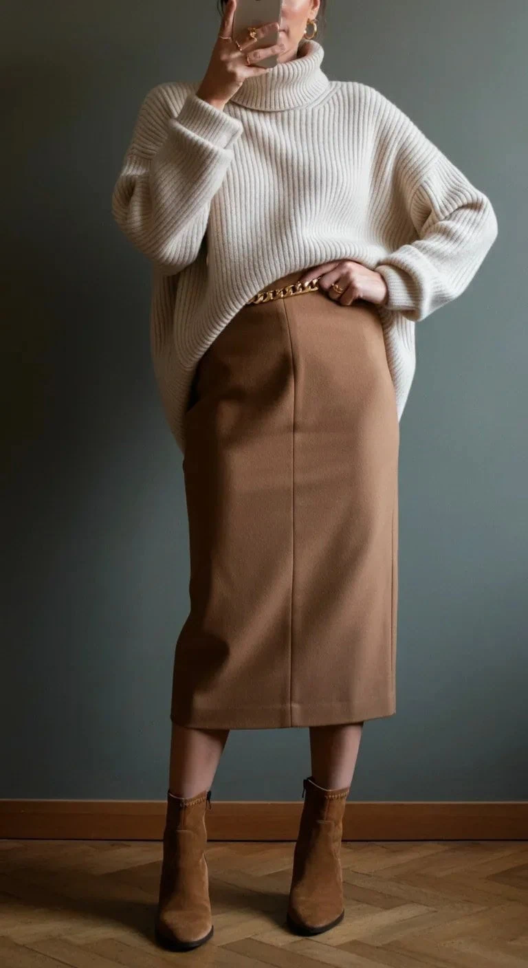 Midi Pencil Skirt with Oversized Sweater
