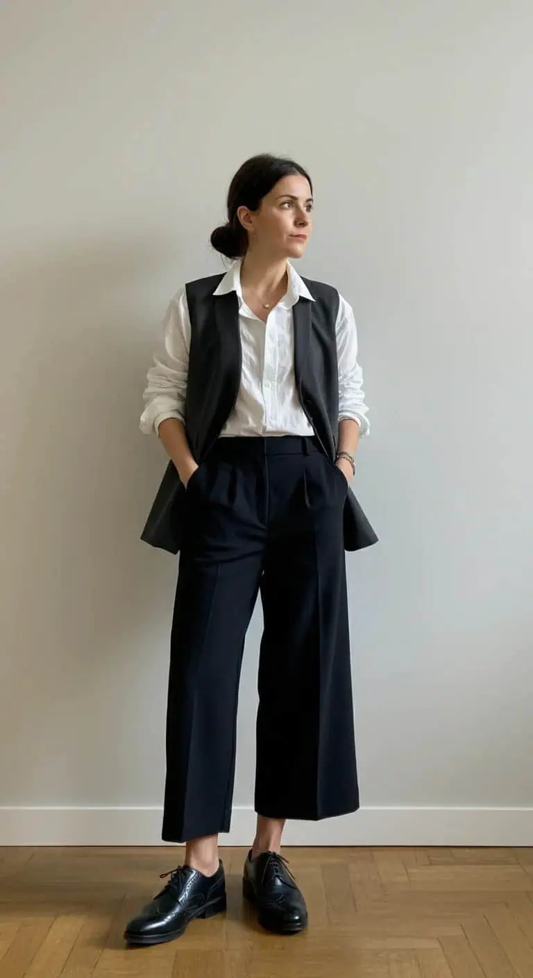 Cropped Wide-Leg Trousers with Layered Vests