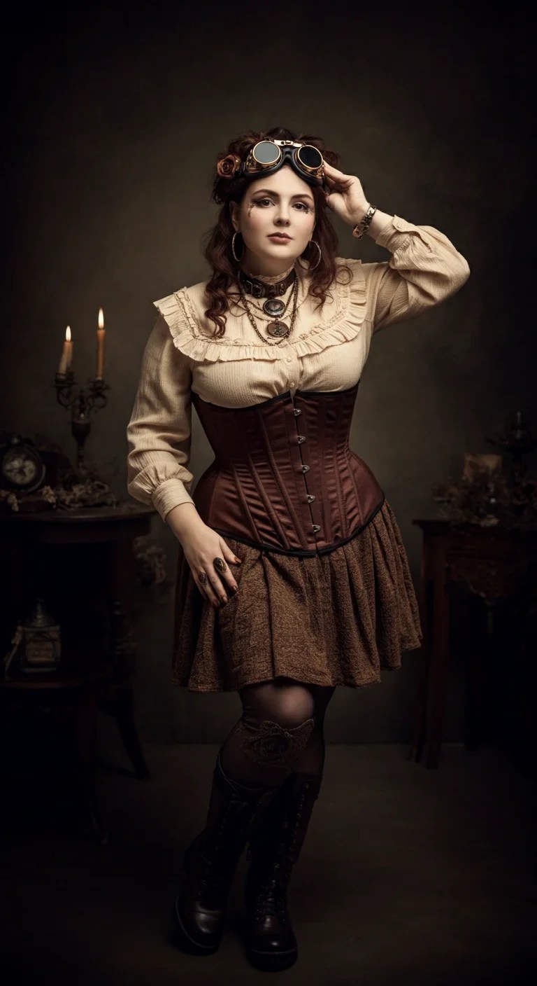 Add steampunk goggles and brass accessories.