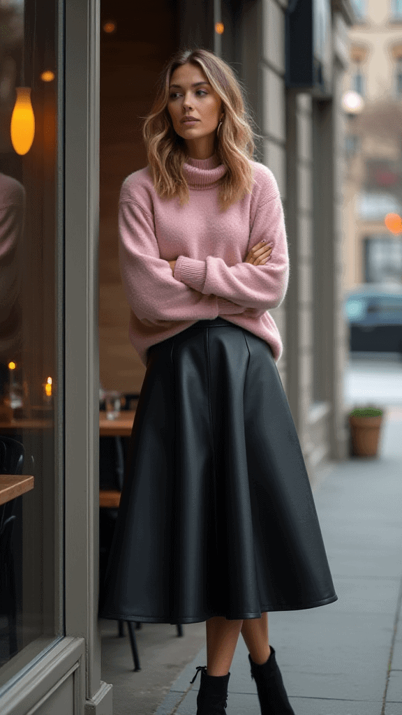 Leather Midi Skirt and Cashmere Sweater