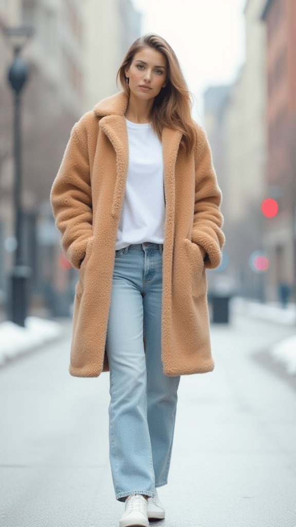 Embrace your inner teddy bear with this cozy-chic look. The teddy coat is like wearing a hug, while the straight-leg jeans keep things casual and cool.