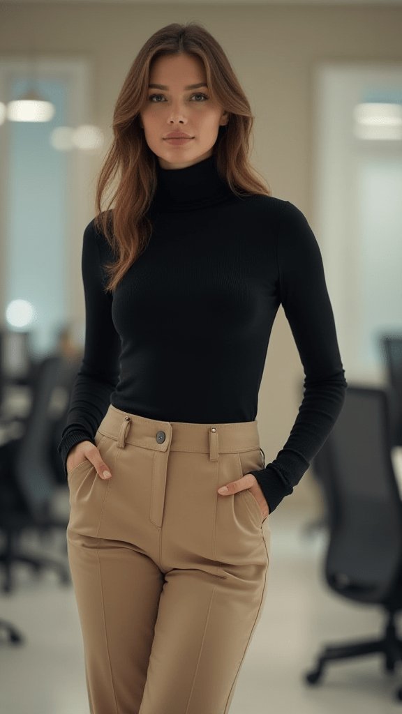 Turtleneck Bodysuit and High-Waisted Trousers