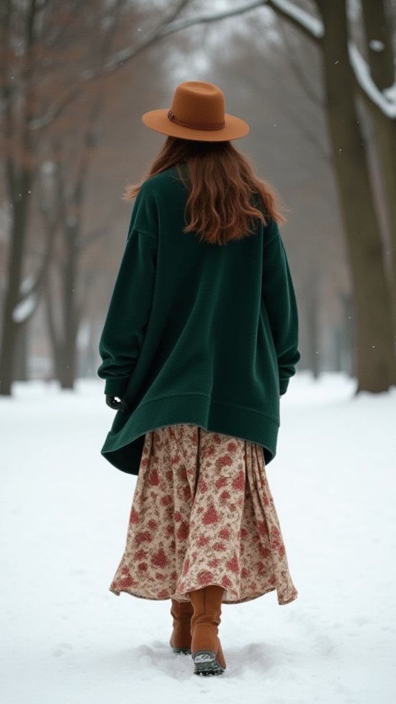 Who says you can t wear florals in winter? A long, flowy skirt paired with a chunky cardigan is the ultimate boho-winter look.