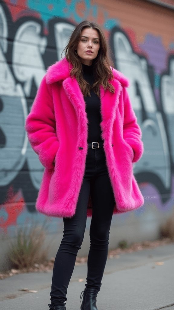Who says winter has to be all neutrals, all the time? Make a statement with a brightly colored faux fur coat. It s like wearing a hug made of rainbows.