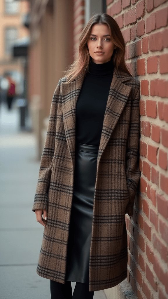 Mix preppy and edgy with this unexpected combo. An oversized plaid blazer adds some scholarly charm, while a leather skirt keeps things from getting too serious.