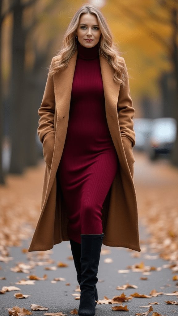 Talk about a match made in winter fashion heaven! A turtleneck dress is like a wearable hug, and knee-high boots are basically leg warmers on steroids.