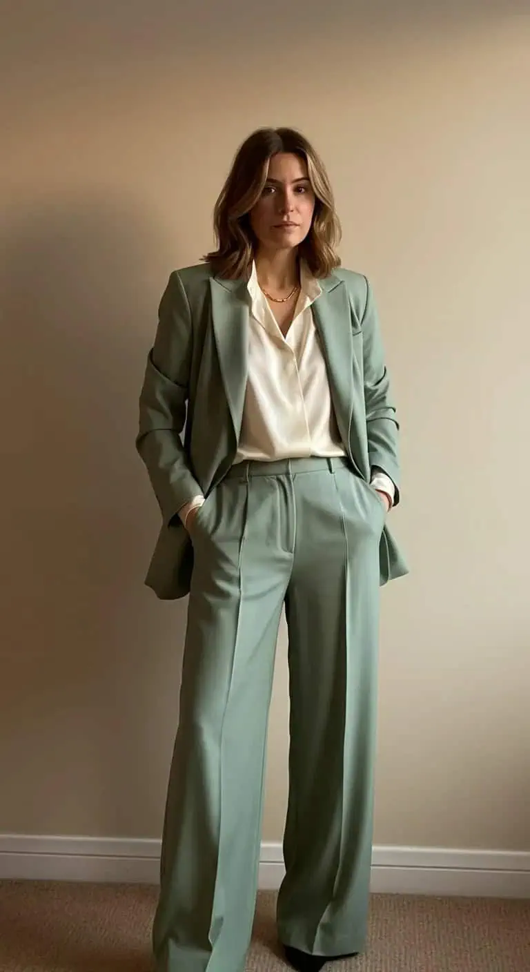 Break away from traditional black and navy with a suit in sage green or dusty rose.