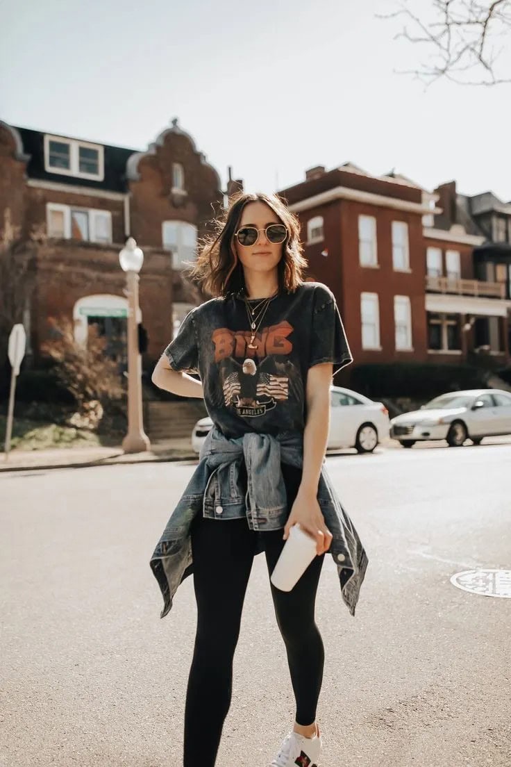 Channel your inner rock star with this effortlessly cool campus look. The vintage-inspired band tee adds an edgy vibe, while black leggings keep things comfortable for those long lectures.
