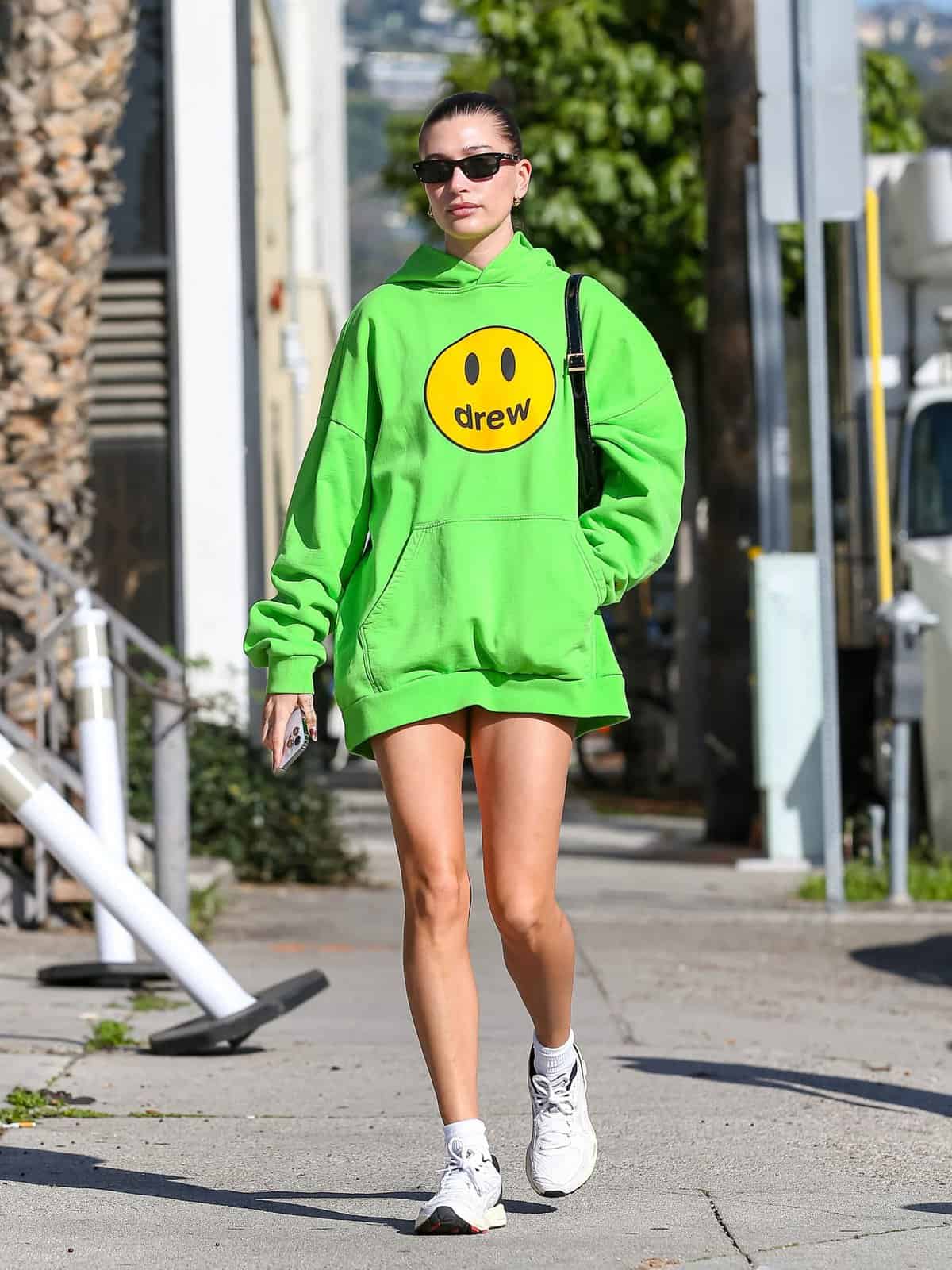 Paired with sleek sunglasses and comfortable white sneakers, this outfit strikes the perfect balance between cozy and cool. The hoodies roomy fit allows for easy layering on chilly days, while its bright color ensures youll stand out in a sea of students.
