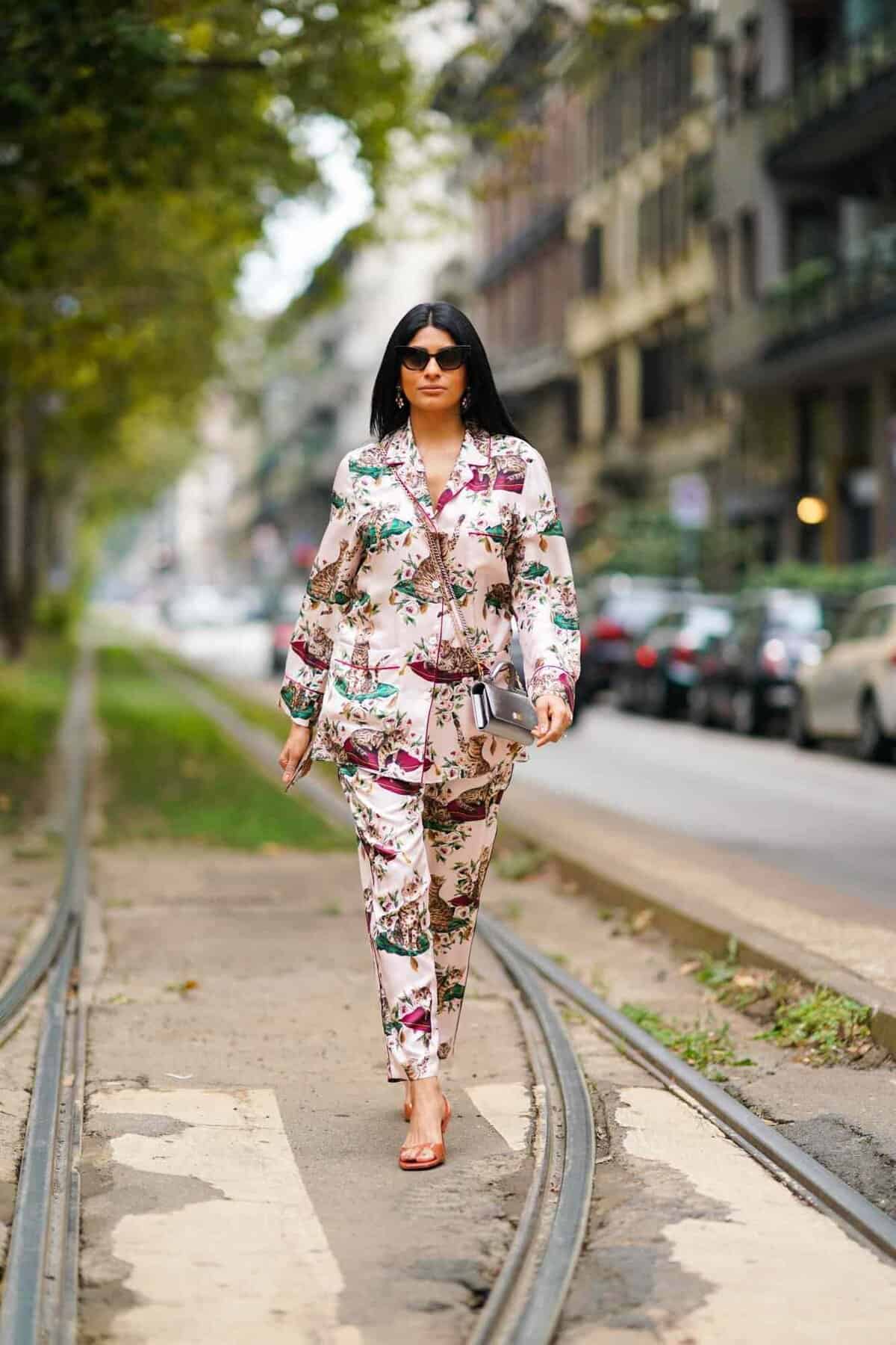 Embrace the spirit of fall with this stunning floral pantsuit that perfectly balances sophistication and seasonal charm. The light base color adorned with rich autumnal hues of green, burgundy, and brown creates a captivating canvas of fall foliage. The matching blazer and trousers offer a polished silhouette, ideal for a chic birthday celebration. Paired with sleek sunglasses and delicate jewelry, this ensemble exudes confidence and style. The outfit’s versatility allows for easy transition from a daytime party to an evening soirée, making it a must-have for any fall birthday girl looking to make a statement. Complete the look with a small metallic bag and simple heeled sandals for an effortlessly elegant autumn aesthetic.