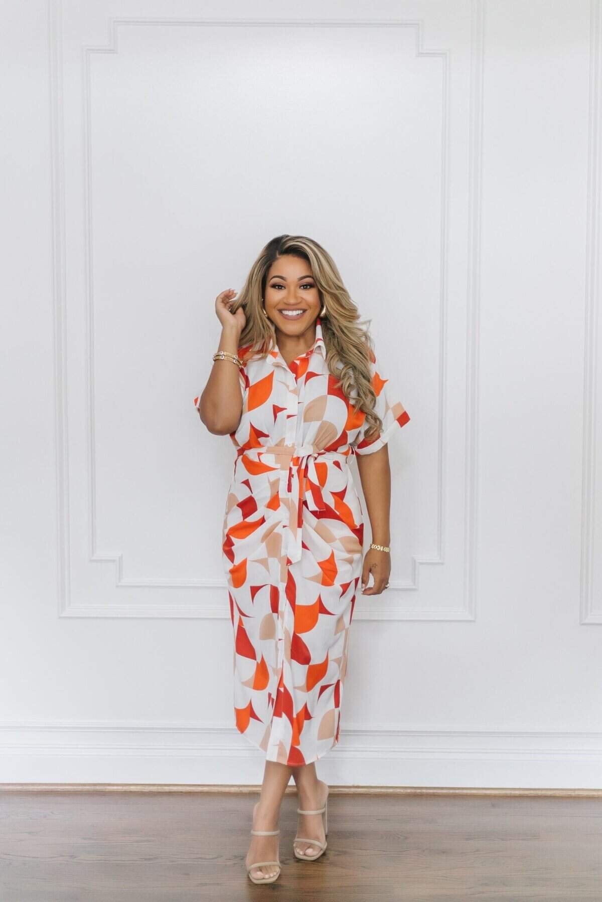The midi length and short sleeves offer versatility for various occasions, from casual outings to dressier events. The cinched waist with a tie detail accentuates your curves while allowing for adjustability as your body changes.