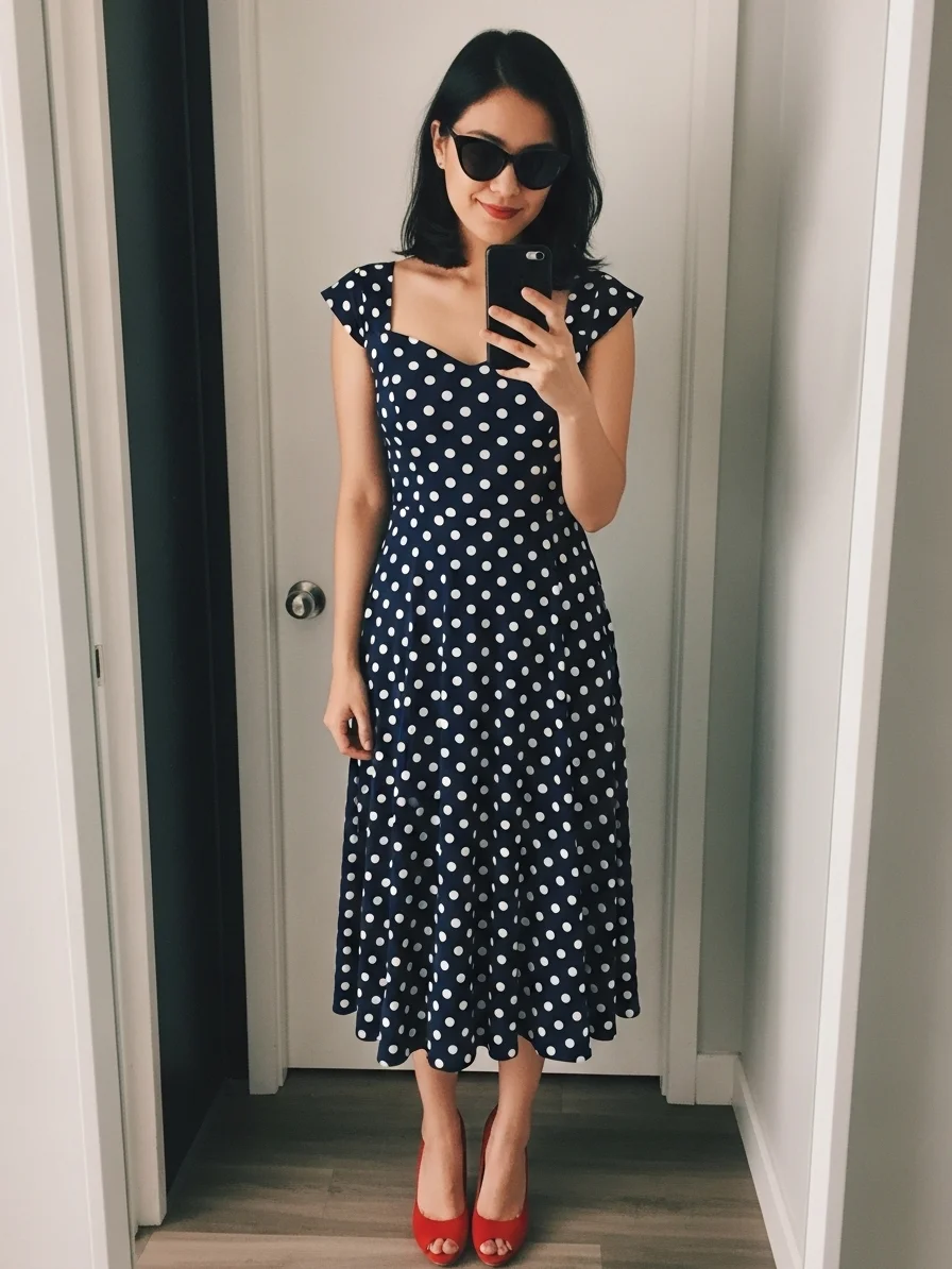 Vintage-Inspired Polka Dot Dress and Cat-Eye Sunglasses