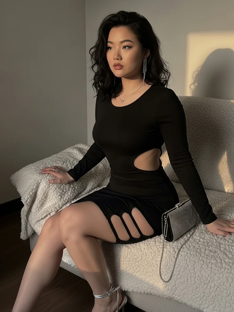 Cut-Out Bodycon Dress and Rhinestone Clutch