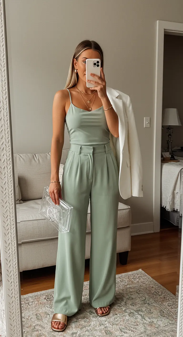 11. Silk Camisole and High-Waisted Palazzo Pants