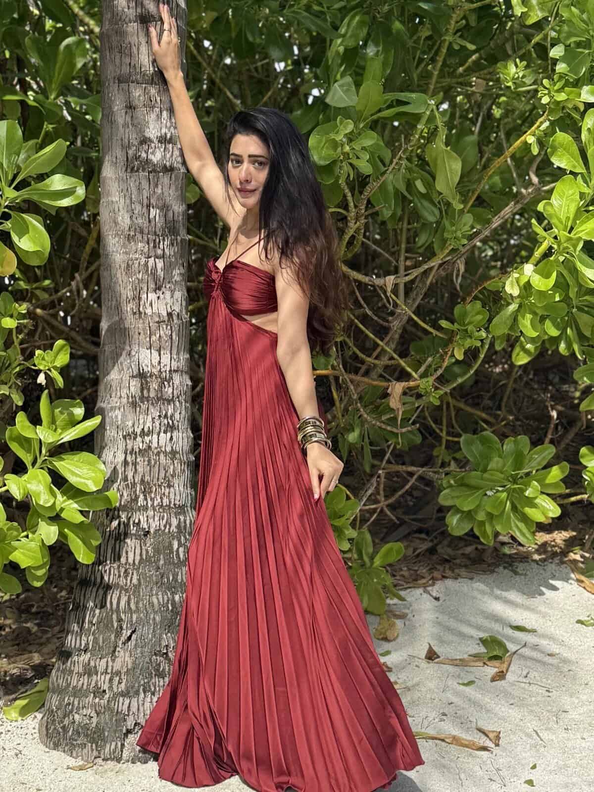 Make a grand entrance at your birthday bash in this stunning burgundy pleated maxi dress. The rich, deep red hue exudes sophistication and glamour, perfect for the ultimate party queen.