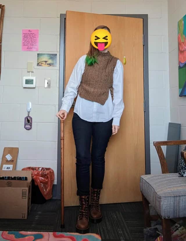 Embrace the art of layering with this chic fall ensemble that’s perfect for the casual office. A chunky knit vest in a rich brown hue adds warmth and texture when worn over a crisp white button-down shirt. The combination creates a polished yet relaxed look that’s ideal for cooler days. Paired with sleek dark jeans and rugged lace-up boots, this outfit strikes the perfect balance between professional and laid-back. The vest’s earthy tone complements the season’s palette, while the classic white shirt keeps the look fresh and office-appropriate. This versatile outfit can easily transition from desk to after-work drinks, making it a must-have for your fall work wardrobe.