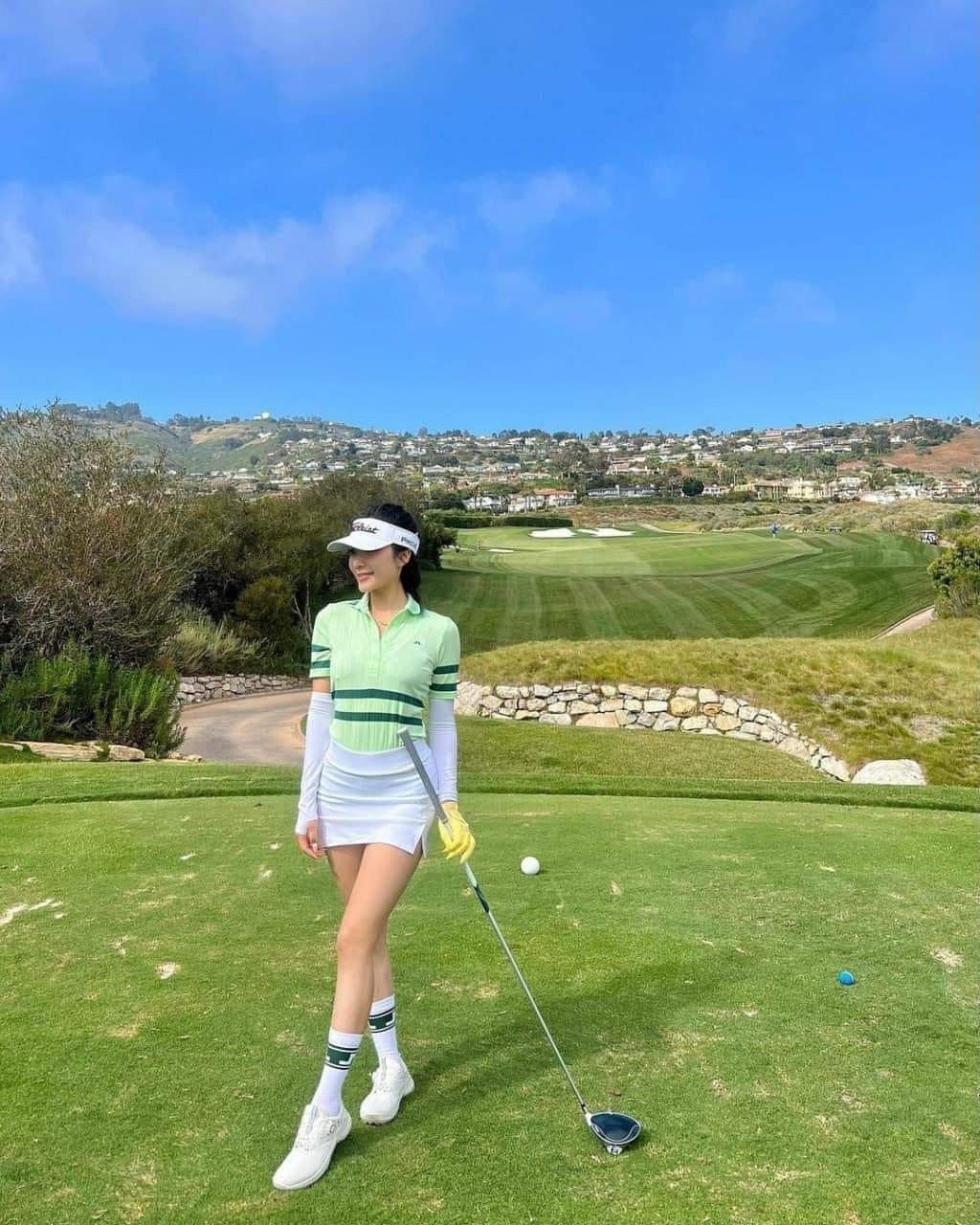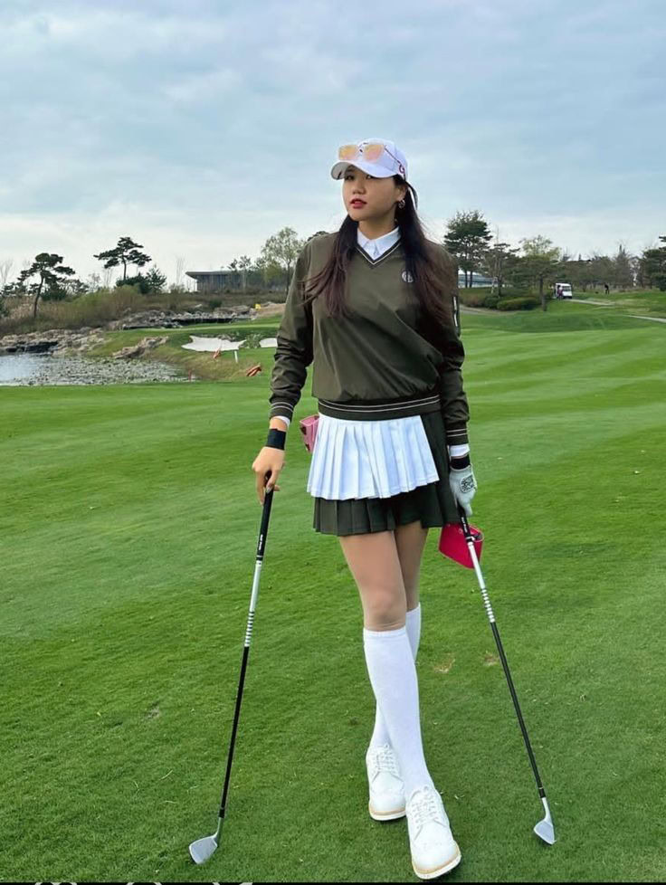 This outfit proves that winter golf wear doesn”t require sacrificing femininity or fashion-forward styling, making it an ideal choice for golfers who want to look polished while staying comfortably warm throughout their round.