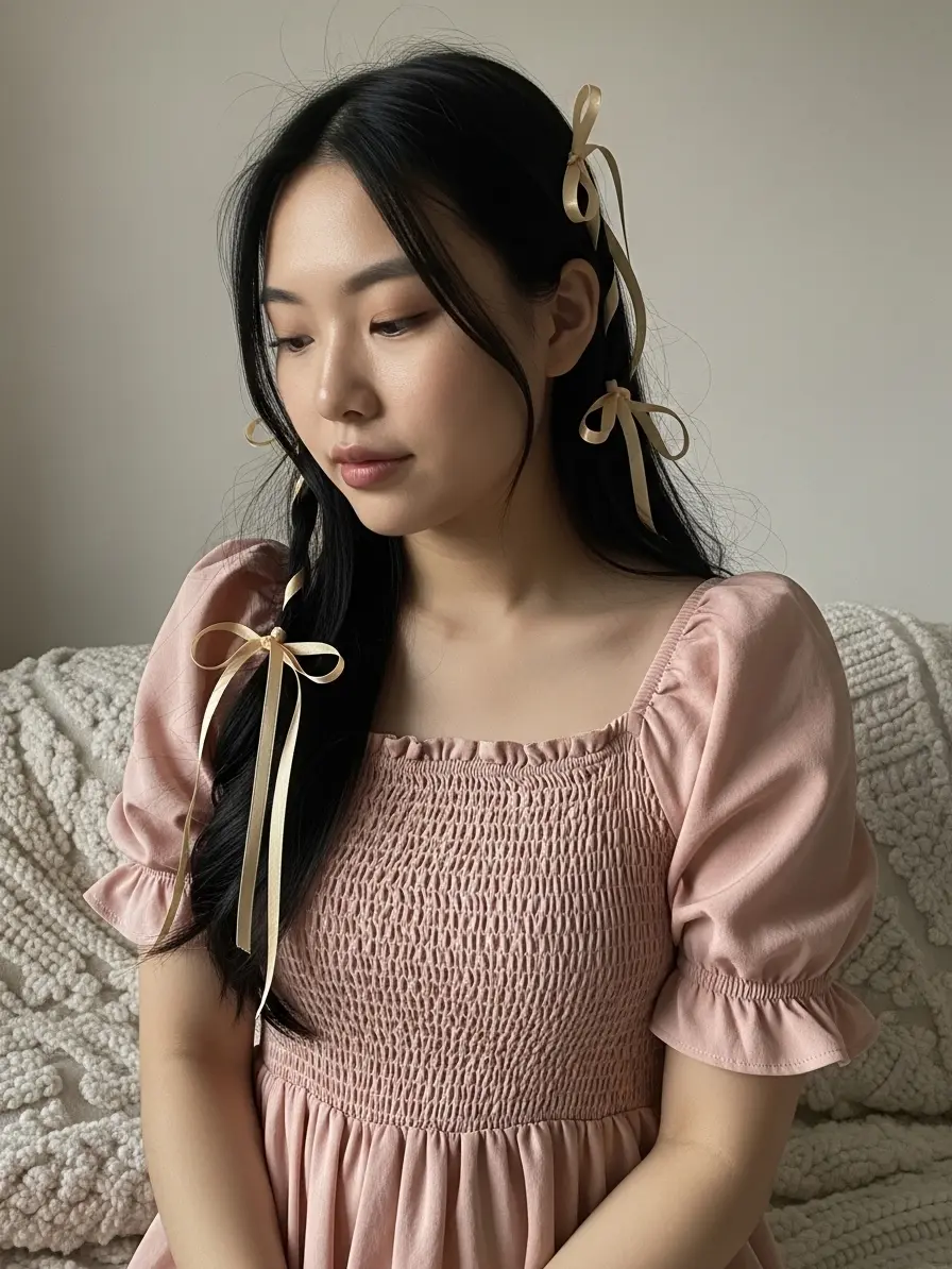 Ribbon accents, perhaps at the waist or sleeves, enhance the sweet, girly aesthetic.