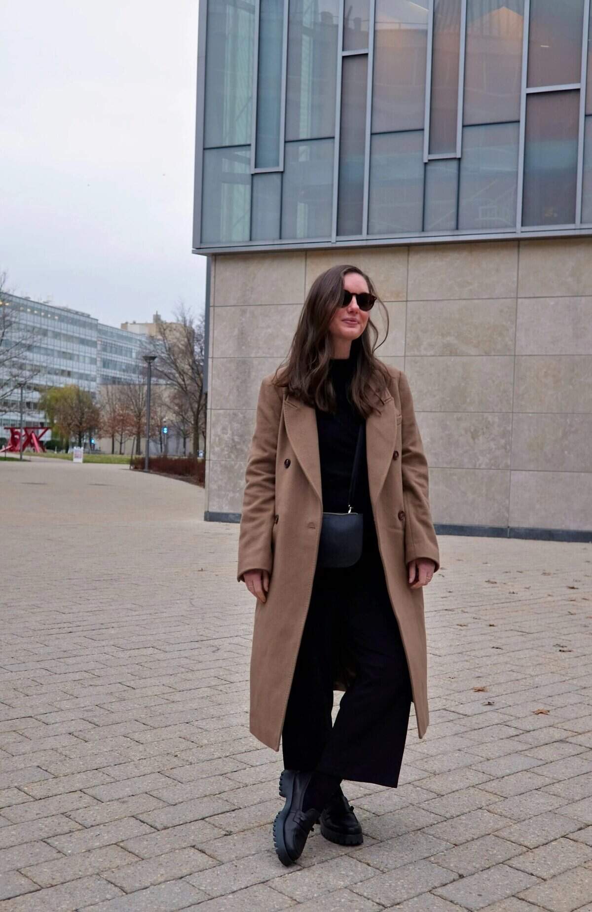 Classic Camel Coat Over All-Black