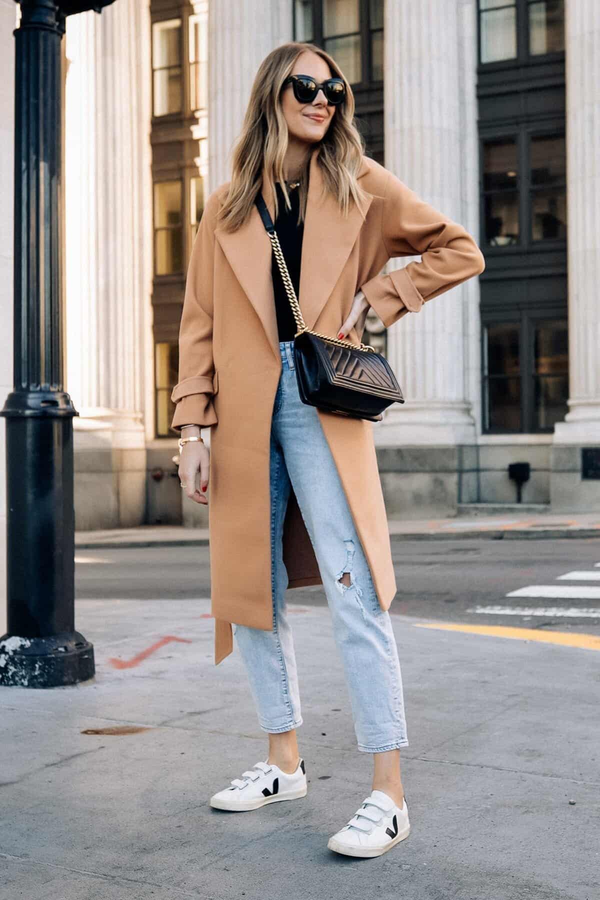 Camel Coat with Casual Denim