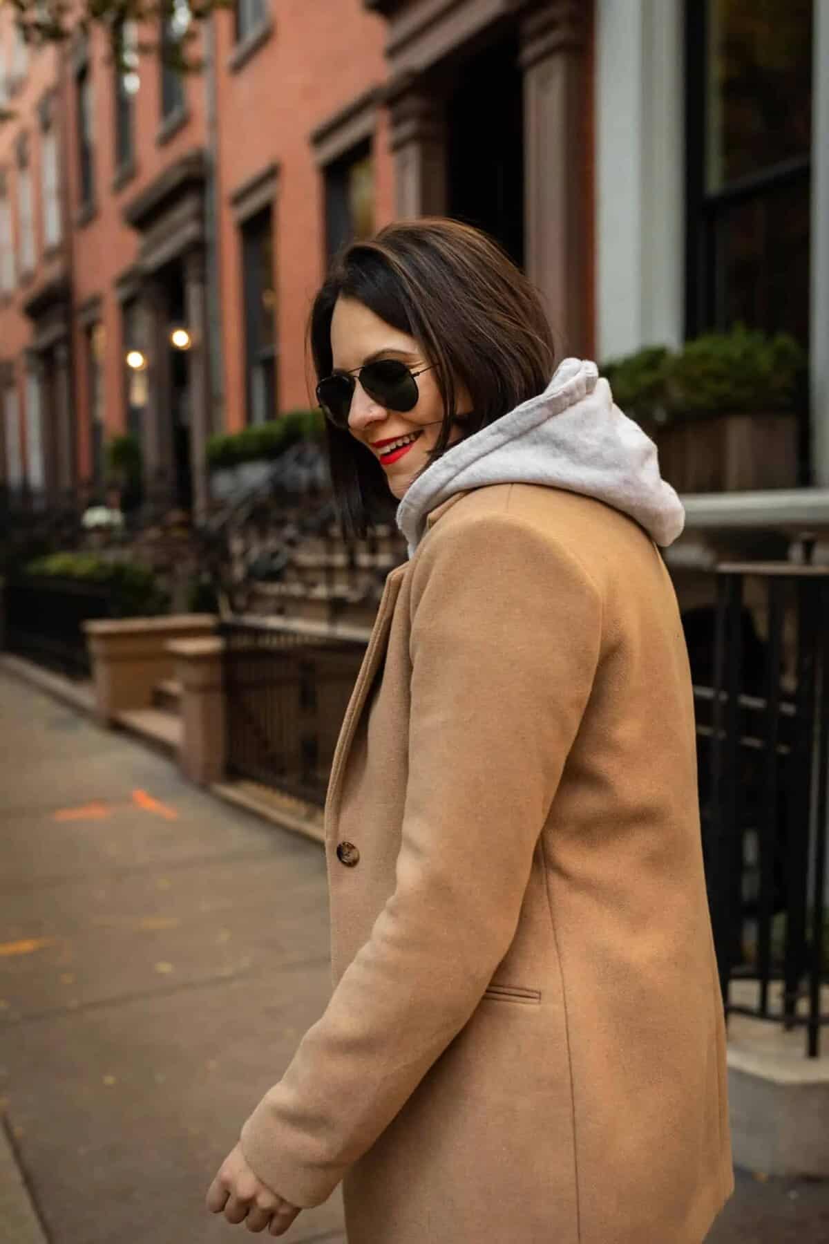 Camel Coat with Hoodie Layering