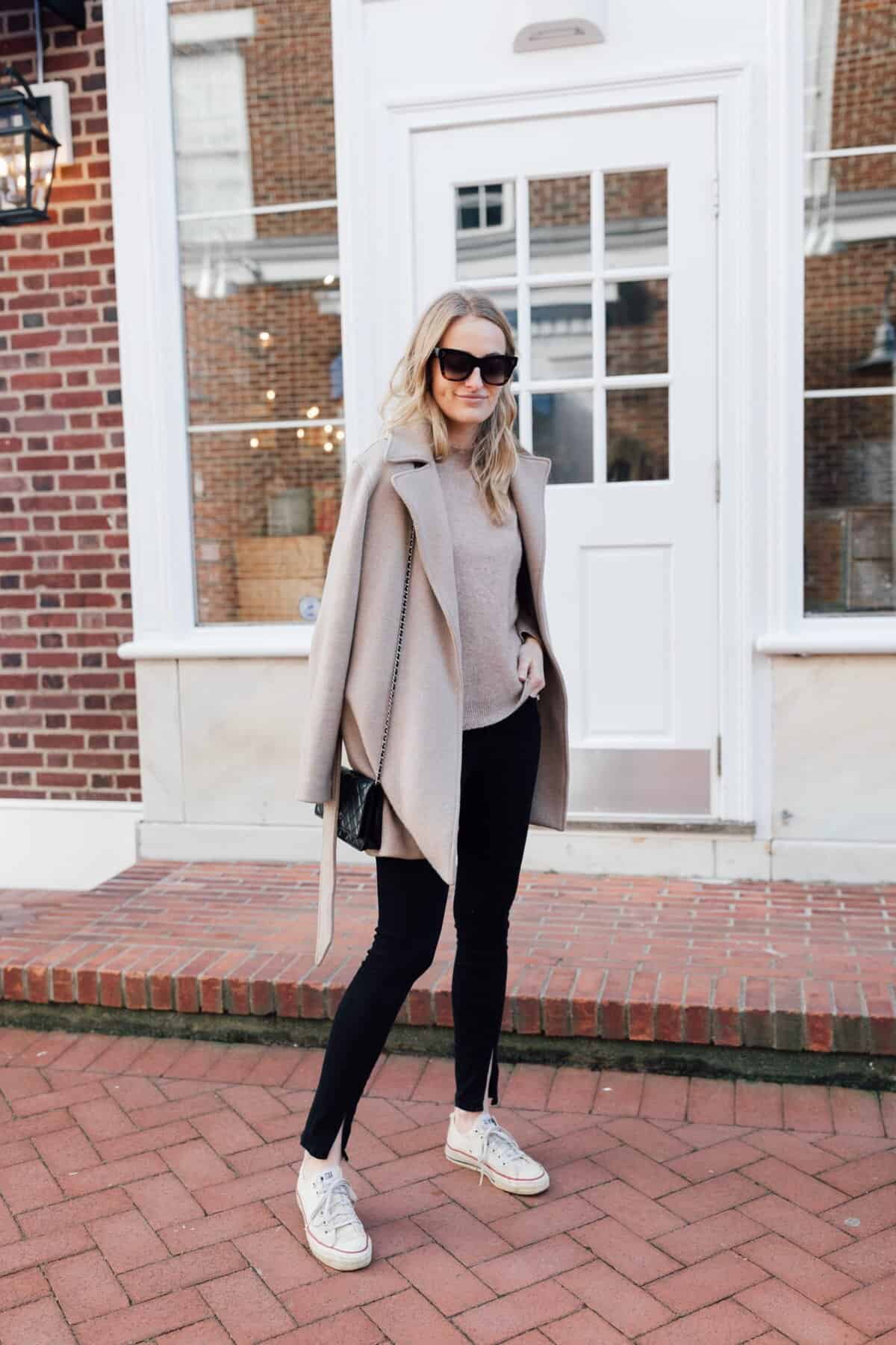 Neutral Coat and Comfy Sneakers