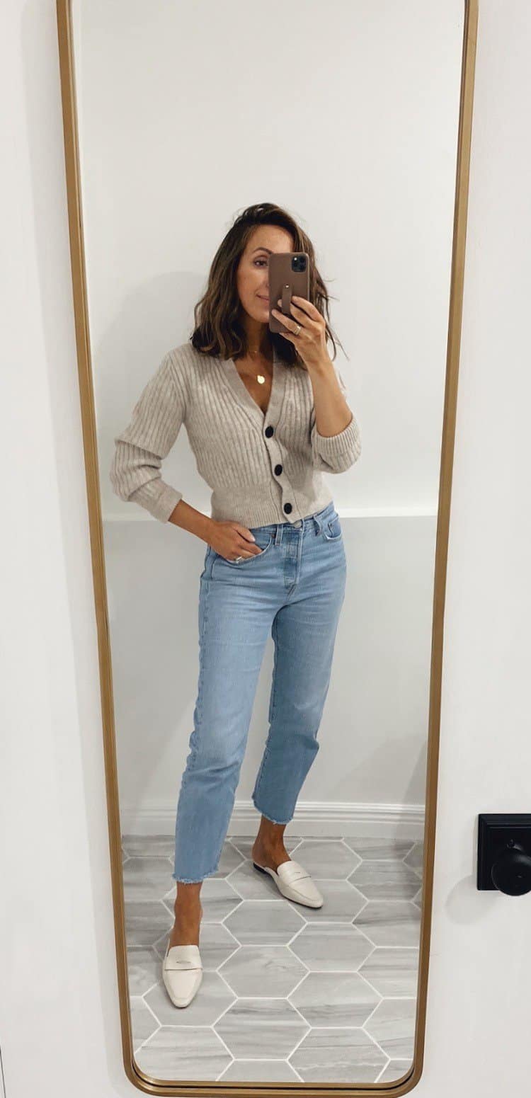 Cropped Cardigan and Straight-Leg Jeans