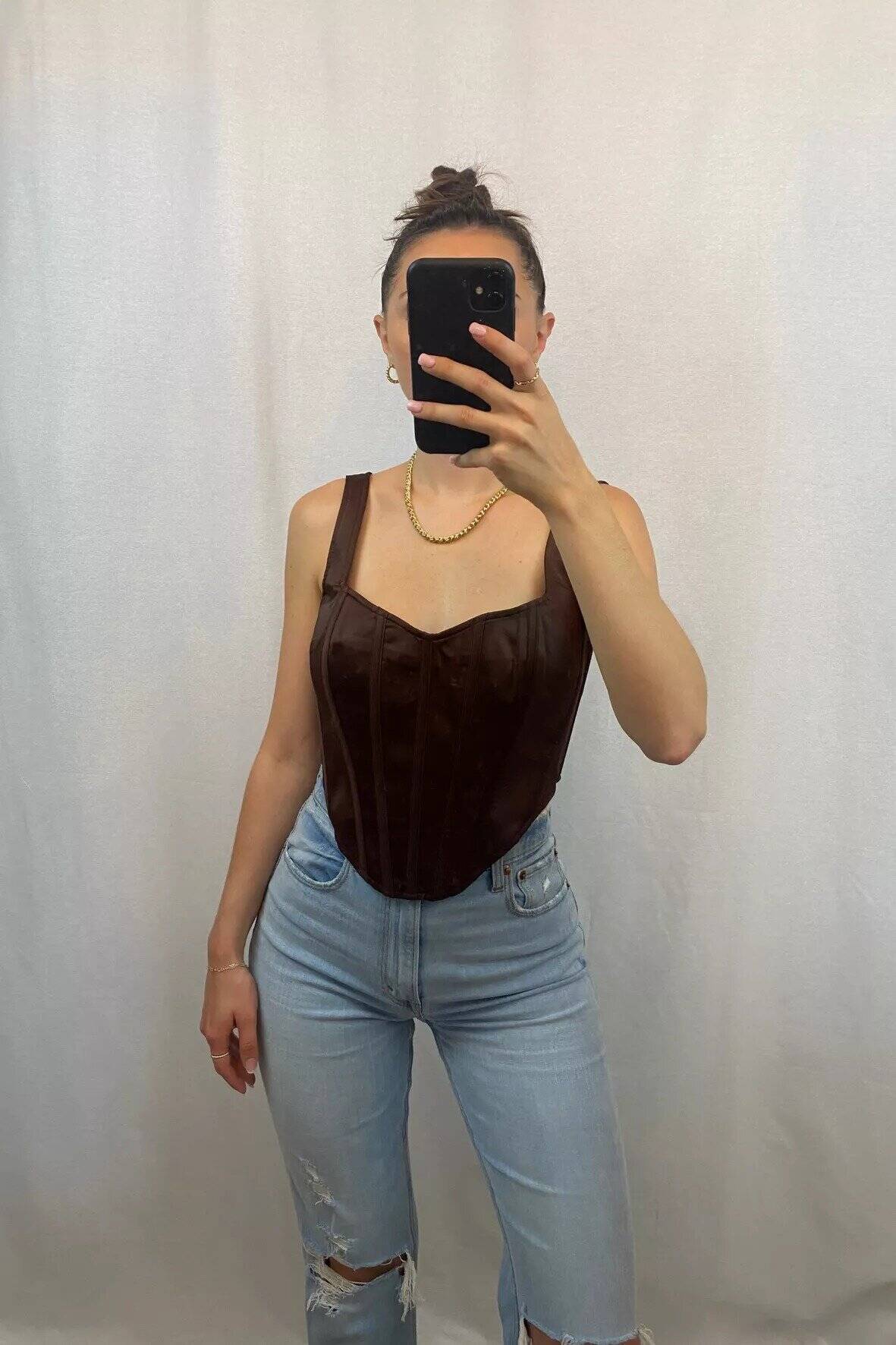 Chocolate Corset Top with Denim