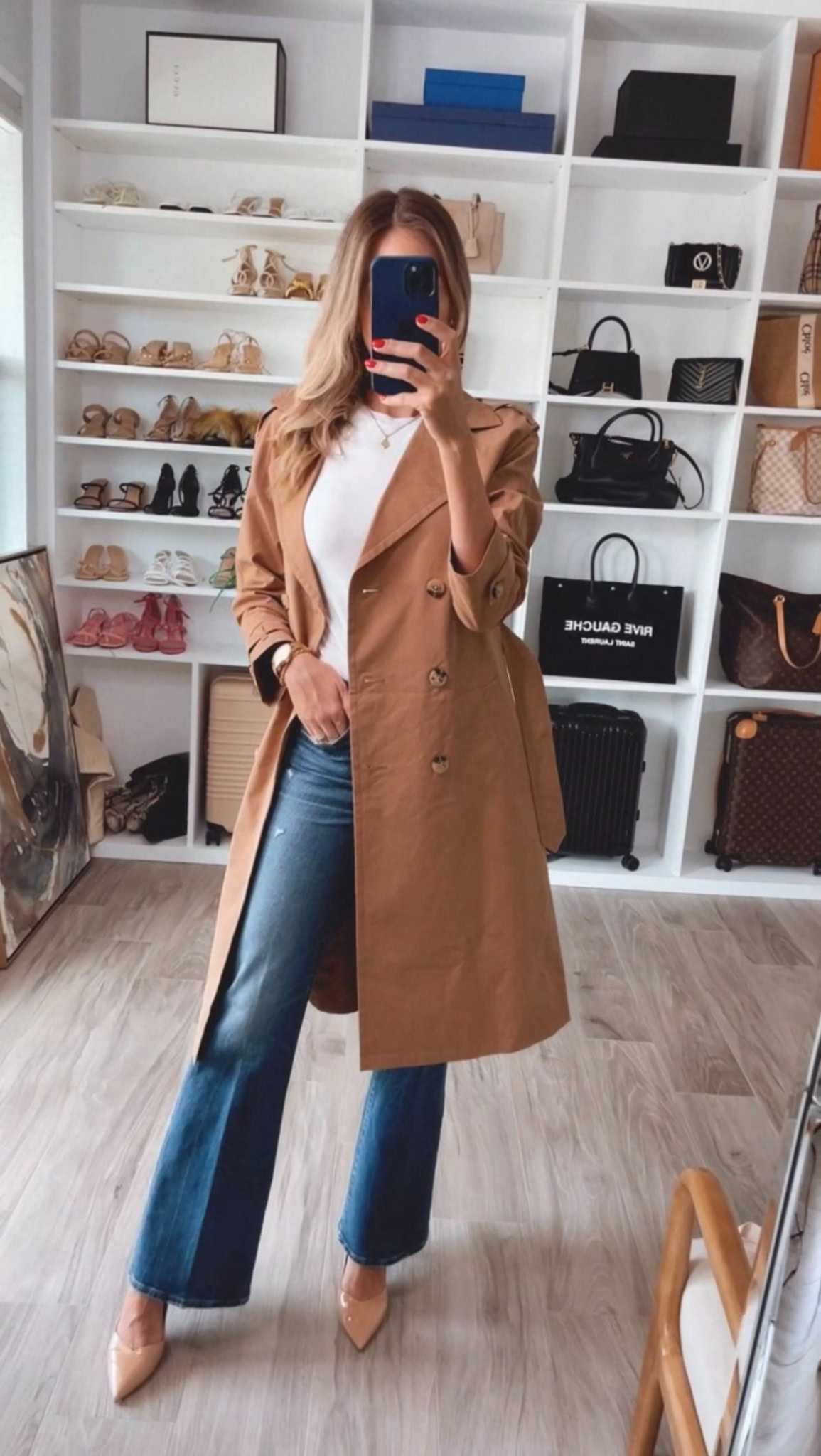This ensemble perfectly embodies the cozy yet chic fall aesthetic. The star of the outfit is undoubtedly the long camel coat, a timeless piece that adds instant sophistication to any look. Paired with a crisp white top and classic blue jeans, this combination strikes the ideal balance between casual and polished. The neutral-toned pointed heels elevate the outfit, making it suitable for both day and evening wear. This layered look not only provides warmth for cooler autumn days but also showcases how to seamlessly blend different textures and tones. The overall effect is effortlessly stylish, demonstrating why a well-chosen coat can be the cornerstone of a head-turning fall wardrobe.