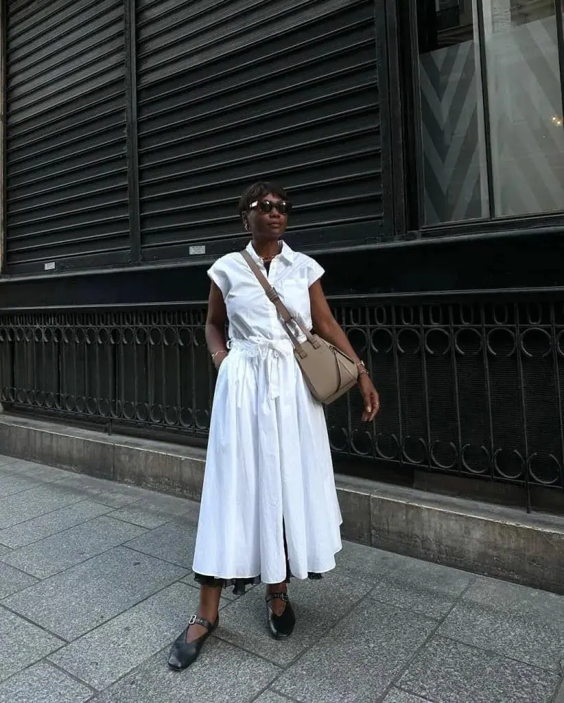 For a birthday look that exudes sophistication and effortless chic, this crisp white shirt dress is a perfect choice. The clean lines and classic silhouette create a timeless appeal, while the cinched waist and flowing skirt add a touch of feminine grace.