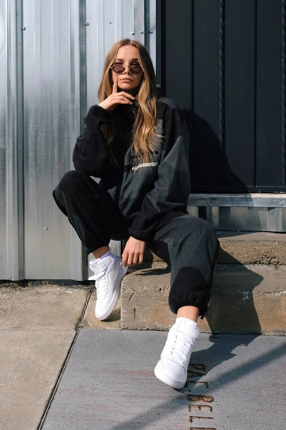 Paired with classic white sneakers, this ensemble proves that comfort and style can coexist in the baddie aesthetic. Its an ideal choice for those who want to look put-together without sacrificing comfort, making it a must-have in any baddies wardrobe.