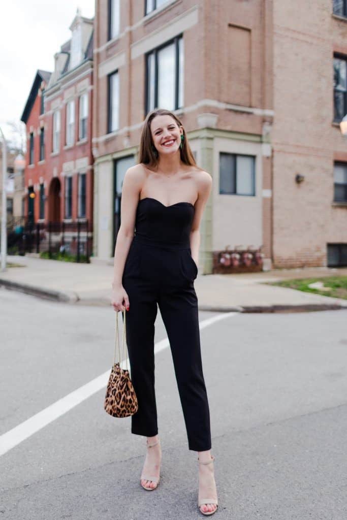 For a birthday dinner that demands sophistication and style, this sleek black strapless jumpsuit is the perfect choice. The fitted bodice and sweetheart neckline create an elegant silhouette, while the tailored pants offer a modern twist on classic evening wear.
