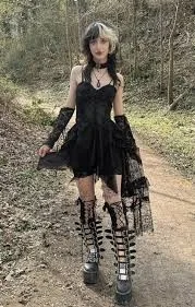 This look strikes an ideal balance between gothic edge and romantic whimsy, making it a captivating choice for those seeking to embody the enchanting spirit of whimsical goth fashion.