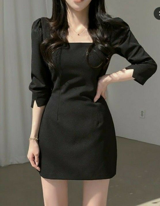 The puff sleeves with three-quarter length create a dramatic yet feminine silhouette, making this dress a standout piece. Accessorized with delicate gold jewelry, this outfit demonstrates how a well-crafted LBD can be the ultimate weapon in any fashion enthusiasts arsenal.